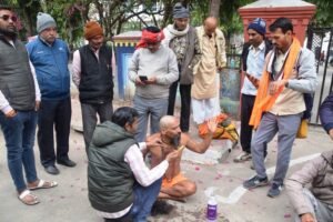 मऊगंज जिला प्रशासन के खिलाफ लगातार विरोध प्रदर्शन कर रहे प्रदर्शनकारी आज रीवा संभागायुक्त कार्यालय पहुंचे जहां मऊगंज कलेक्टर के खिलाफ ना सिर्फ विरोध प्रदर्शन किया बल्कि कडकडाती ठंड में नंगे बदन धरने पर बैठे और विरोध स्वरूप सिर का मुण्डन संस्कार भी कराया है. प्रदर्शनकारियों में देश बचाओ अध्यात्मिक राष्ट्रीय पुर्नजागरण अभियान के राष्ट्रीय प्रचारक मुद्रिका प्रसाद त्रिपाठी, रिटायर्ड शिक्षक सहित अन्य लोग शामिल रहे. उन्होंने कहा कि सिर का मुण्डन करा वह व्यवस्था में परिवर्तन का संदेश देना चाहते है. प्रदर्शनकारियों का आरोप है कि मऊगंज कलेक्टर द्वारा संवैधानिक मर्यादाओं की सरेआम धज्जियां उड़ाई जा रही है. उन्होंने ज्ञापन पत्र के माध्यम से कलेक्टर को तत्काल निलंबित करने और फरियादिया शिक्षिका शकुंतला नीरत का कूटरचित निलंबन समाप्त करने की मांग की है. फिलहाल इस विरोध प्रदर्शन के बीच स्थानीय जिला प्रशासन के अधिकारी मौके पर पहुंचे हैं और प्रदर्शनकारियों को समझाइस देते हुए उन्हें शांत कराया.
