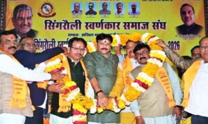 सिंगरौली: बैढ़न स्थित सामुदायिक भवन में स्वर्णकार समाज संघ द्वारा सम्मेलन एवं सम्मान समारोह का आयोजन किया गया, जिसमें जिले सहित सोनभद्र (उत्तर प्रदेश) से बड़ी संख्या में समाजजनों की भागीदारी रही। जिलाध्यक्ष सत्यनारायण सोनी संजय ने बताया कि आयोजन का उद्देश्य समाज को एक सूत्र में बांधना, नई दिशा देना और संगठन को सशक्त बनाना है। सम्मेलन में अनपरा, शक्तिनगर व विभिन्न बाजारों तथा ग्रामीण अंचलों से लोग पहुंचे।