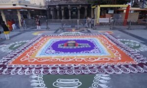 मंदिर परिसर को भव्य पुष्प सज्जा और आकर्षक रंगोली से अलंकृत किया गया है. गर्भगृह, नंदी मंडपम्, गणेश मंडपम्, कार्तिक मंडपम्, पालकी हॉल, अभिषेक स्थल एवं प्रथम तल के आसपास विशेष पुष्प सज्जा की गई है. मंदिर के विभिन्न हिस्सों में आकर्षक रंगोलियाँ बनाई गई हैं, जिससे पूरा परिसर आध्यात्मिक सौंदर्य से आलोकित हो उठा है.