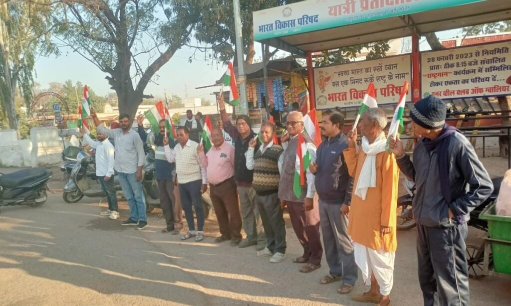 ग्वालियर: भारत विकास परिषद सहयोग शाखा ग्वालियर द्वारा बहोड़ापुर तिराहे पर नियमित राष्ट्र गान की श्रंखला में आज रविवार की सुबह “स्वच्छ भारत का रखें ध्यान — बस 1 मिनट रुके राष्ट्र के नाम” श्रृंखला के तहत राष्ट्र गान आयोजित किया गया। क्षेत्रीय आमजन की बड़ी संख्या में सहभागिता रही। […]