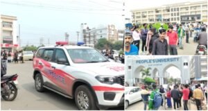 भोपाल: राजधानी के भानपुर स्थित पीपल्स यूनिवर्सिटी में उस वक्त हड़कंप मच गया, जब संस्थान को ई-मेल के जरिए बम से उड़ाने की धमकी मिली। धमकी भरे मेल के बाद सुरक्षा की दृष्टि से आनन-फानन में पूरी यूनिवर्सिटी और अस्पताल परिसर को खाली करा लिया गया है।