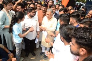 जबलपुर। प्रदेश के उच्च शिक्षा, तकनीकी शिक्षा एवं आयुष मंत्री इंदर सिंह परमार शनिवार को मानकुंवर बाई कला एवं वाणिज्य महाविद्यालय तथा शासकीय मोहनलाल हरगोविंद दास गृह विज्ञान महिला महाविद्यालय द्वारा आयोजित कार्यक्रम में शामिल होने जबलपुर पहुंचे थे, कार्यक्रम के दौरान होम साइंस कॉलेज के बाहर अखिल भारतीय विद्यार्थी परिषद द्वारा विभिन्न मांगों को लेकर प्रदर्शन किया गया। कार्यक्रम के बाद बाहर आकर मंत्री परमार प्रदर्शन कर रहे विधार्थियों से मिले और उनकी समस्याओं को सुना, जिसके बाद एबीवीपी के विद्यार्थियों ने मंत्री परमार को ज्ञापन सौंपा। इस मौके पर बड़ी संख्या में विद्यार्थी परिषद के लोग मौजूद थे।