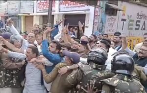 जबलपुर। बल्देवबाग चौक के पास शनिवार को उस वक्त सियासी माहौल गरमा गया जब भारतीय जनता युवा मोर्चा और कांग्रेस के कार्यकर्ताओं का समूह आमने सामने टकरा गया। इस दौरान दोनों संगठनों के कार्यकर्ताओं के बीच हाथापाई भी हुई। सियासी माहौल बिगड़ने की खबर सुनकर मौके पर बड़ी संख्या में पुलिस बल तैनात कर दिया गया और तत्काल बैरिकेडिंग कर स्थिति पर नियंत्रण पाने का प्रयास पुलिस द्वारा किया गया लेकिन आक्रोशित भाजयुमो के कार्यकर्ताओं ने पुलिस बैरिकेडिंग को तोड़ा और कांग्रेस कार्यालय की ओर जाकर घेराव प्रदर्शन किया। इस मौके पर भाजयुमो कार्यकर्ताओं द्वारा जहां एक ओर राहुल गांधी मुर्दाबाद -मुर्दाबाद के नारे लगाए गए तो वहीं दूसरी ओर युवा कांग्रेस व कांग्रेसियों द्वारा वोट चोर मोदी वोट चोर मोदी के नारे लगाए गए।