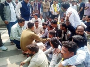 आईए थाना प्रभारी विक्रमसिंह चौहान भी आक्रोशित लोगों के साथ सडक़ पर नीचे बैठ गए और समझाइश देने मे लग गए।
