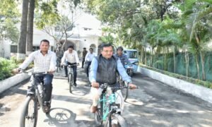 रीवा:पर्यावरण की सुरक्षा तथा स्वयं की स्वास्थ्य रक्षा के उद्देश्य से सप्ताह में मंगलवार के दिन कमिश्नर बीएस जामोद की पहल पर अधिकारी और कर्मचारी साइकिल से कार्यालय पहुंच रहे हैं. यह क्रम लगातार बना हुआ है. सुमंगल साइकिल दिवस पर कमिश्नर और अन्य अधिकारी साइकिल से कमिश्नर कार्यालय पहुंचे.