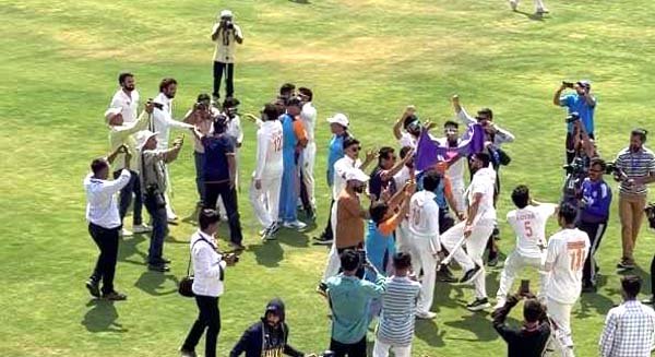 जम्मू-कश्मीर के कप्तान पारस डोगरा ने जैसे ही अपनी दूसरी पारी चार विकेट पर 342 रन पर घोषित की उसके खिलाड़ी मैदान पर जश्न मनाने लगे। स्थानीय समयानुसार दोपहर के 2.10 बज चुके थे। दोनों कप्तानों ने हाथ मिलाने का फैसला किया, जम्मू-कश्मीर ने पहली पारी की बढ़त के आधार पर खिताब अपने नाम किया। जम्मू-कश्मीर को यह नामुकिन जीत हासिल करने में 67 साल लग गये। लेकिन आखिर यह संभव हो गया। अपना पहला फाइनल खेलना और वह भी आठ बार के चैंपियन कर्नाटक के खिलाफ बहुत बड़ी बात थी। लेकिन टीम ने बल्ले और गेंद से दबदबा बनाया और कर्नाटक को रोक दिया।