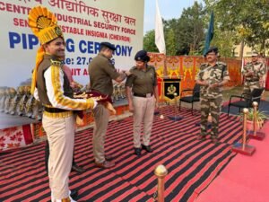 भोपाल। राजाभोज एयरपोर्ट पर सीआईएसएफ के वरिष्ठ आरक्षकों के लिए पाइपिंग समारोह का आयोजन किया गया. इस आयोजन में समारोह चयनित कर्मचारियों को वरिष्ठ आरक्षक पद की पदोन्निति का प्रतीक चेवरॉन से सम्मानित किया गया. यह सम्मान सीआईएसएफ के कमांडेंट अतुल भनोत्रा ने प्रदान किया. इस अवसर पर कमांडेंट ने समर्पण, अनुशासन एवं कर्तव्यनिष्ठा के साथ कार्य करने के लिए प्रेरित किया. आयोजन में सीआईएसएफ इकाई के वरिष्ठ अधिकारी एवं सहकर्मी उपस्थित रहे.