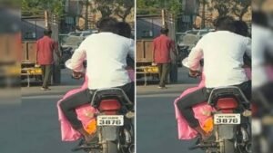 वीडियो में साफ देखा जा सकता है कि युवक बिना किसी सुरक्षा के लापरवाहीपूर्वक बाइक चला रहा है, जिससे न केवल उसकी और महिला की जान जोखिम में है, बल्कि अन्य राहगीरों की सुरक्षा भी खतरे में पड़ सकती है।