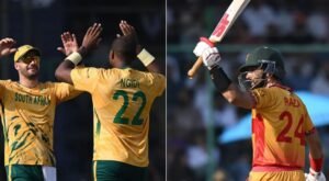 नयी दिल्ली 01 मार्च (वार्ता) कप्तान सिकंदर रजा (73 ) और क्लाइव मडांडे (नाबाद 26) की शानदार पारी की बदौलत जिम्बाब्वे ने रविवार को टी-20 विश्वकप के सुपर आठ मुकाबले में दक्षिण अफ्रीका के खिलाफ सात विकेट पर 153 रन का स्कोर बनाया। आज यहां जिम्बाब्वे ने टॉस जीतकर पहले बल्लेबाजी करने का फैसला किया। बल्लेबाजी करने उतरी जिम्बाब्वे की शुरुआत अच्छी नहीं हुई और उसने 28 के स्कोर तक अपने दो विकेट गंवा दिये। टी. मारूमानी (सात), ब्रायन बेनेट (15) रन बनाकर आउट हुये। इसके बाद डिओन मेयर्स और सिकंदर रजा की जोड़ी ने पारी को संभालने का प्रयास किया। दोनों बल्लेबाजों ने तीसरे विकेट के लिए 38 रन जोड़े। नौवें ओवर में जॉर्ज लिंडे ने डिओन मेयर्स (11) को आउटकर इस साझेदारी को तोड़ा। रॉयन बर्ल (पांच) और टोनी मोनियोंगा (दो) रन बनाकर आउट हुये। 17वें ओवर में वेना मफाका ने तेजी के साथ रन बना रहे सिकंदर रजा को आउट कर पवेलियन भेज दिया। सिकंदर रजा ने 43 गेंदों में आठ चौके और चार छक्के उड़ाते हुए 73 रनों की विस्फोटक पारी खेली। पारी के आखिरी ओवर की तीसरी गेंद पर ब्रैड इवांस (8) रन बनाकर आउट हुये। जिम्बाब्वे ने निर्धारित 20 ओवरों में सात विकेट पर 153 रनों का चुनौतीपूर्ण स्कोर बनाया। क्लाइव मडांडे ने 20 गेंदों में तीन चौके लगाते हुए नाबाद 26 रनों की पारी खेली।