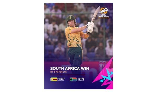 नयी दिल्ली 01 मार्च (वार्ता) गेंदबाजों के बेहतरीन प्रदर्शन के बाद डेवाल्ड ब्रेविस (42) और जॉर्ज लिंडे (नाबाद 30 रन / एक विकेट) के शानदार प्रदर्शन की बदौलत दक्षिण अफ्रीका ने टूर्नामेंट में अपना विजय अभियान जारी रखते हुए रविवार को टी-20 विश्वकप के सुपर आठ मुकाबले में जिम्बाब्वे को पांच विकेट से शिकस्त दी।