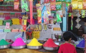 होली पर रंग खेलने को लेकर बच्चों एवं युवाओं में काफी उत्साह देखा जा रहा है। जिसके चलते सोमवार को देर शाम तक लोगो भीड़ रंग एवं गुलाल खरीदने दुकानों में उमड़ती रही। शहर में रंग एवं गुलाल की दुकानें सडक़ की पटरियों पर जगह-जगह सजी हुई थी। बाजार क्षेत्र में लालता चौकए सोनांचल बस स्टैण्ड के सामने, संजीवनी पालिका बाजार क्षेत्र, गांधी चौक, अस्पताल तिराहा, न्यू बस स्टैण्ड क्षेत्र में सैकड़ों दुकानें रंग, अबीर की सजी हुई थी। जहां खरीदी करने वालों की भीड़ सुबह से ही उमड़ रही थी। सुबह से बाजार क्षेत्र में खरीदी करने वालों में ज्यादातर लोग ग्रामीण अंचलों के थे। जिनके द्वारा अपनी जरूरत के अनुसार रंग अबीर की खरीदी की गई। होली पर रंग एवं गुलाल की भारी मांग होने के कारण व्यवसाइयों द्वारा भी काफी स्टाक जमा किया गया था। रंग एवं गुलाल की बिक्री करने का सिलसिला शहर में करीब एक सप्ताह से चल रहा था। आज होलिका दहन के दिन बाजार क्षेत्र में सबसे ज्यादा खरीददारी करने लोगों की भीड़ दुकानों में जमा थी। जहां पिचकारी एवं गुब्बारों की खरीदी भी जमकर लोगों ने की। होली के त्यौहार को लेकर जहां चहुंओर रंगोत्सव की खुमारी छाई हुई है। वहीं पुलिस प्रशासन द्वारा भी कानून एवं व्यवस्था बनाये रखने के लिए व्यापक इन्तजाम किये गये हैं।