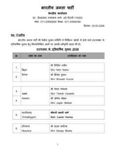 पार्टी सूत्रों के अनुसार, उम्मीदवारों के चयन में संगठनात्मक अनुभव, क्षेत्रीय संतुलन और राजनीतिक समीकरणों का विशेष ध्यान रखा गया है। राज्यसभा चुनाव को लेकर सभी राज्यों में नामांकन प्रक्रिया और चुनावी गतिविधियां जल्द ही तेज होने जा रही हैं। भाजपा उम्मीदवारों के नाम इस प्रकार हैं।