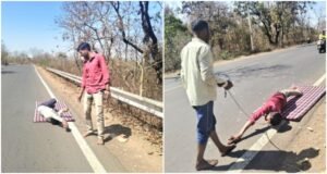 सलामतपुर: मार्च का महीना शुरू होते ही गर्मी ने अपना असर दिखाना शुरू कर दिया है। तेज धूप और बढ़ते तापमान के बीच भोपाल-विदिशा स्टेट हाईवे-18 पर आस्था का अनोखा नजारा देखने को मिला। यहां दो युवक सड़क पर पिंड भरते हुए करीब 180 किलोमीटर की धार्मिक यात्रा पर निकले हैं।जानकारी के अनुसार भोपाल के तारे सेवनिया से विदिशा जिले के गंजबासोदा के आगे स्थित नूरपुर गांव में भैरव बाबा के स्थान तक यह यात्रा की जा रही है।