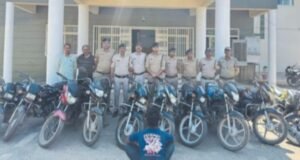 सुठालिया: पुलिस ने क्षेत्र में बाईक चोरों पर बड़ी कार्यवाही करते हुए कुल 10 मोटरसाइकिल सहित 05 लाख रुपये का मशरूका जप्त किया है. थाना प्रभारी सुठालिया (मऊ) उनि अनिल राहोरिया एवं उनकी टीम ने कार्यवाही करते हुए आरोपियों को हिरासत में लिया है.थाना सुठालिया (मऊ) के अप.क्र. 22/26 धारा 303 (2) बीएनएस एवं अप.क्र. 47/26 धारा 303(2) बीएनएस में आरोपी प्रकाश भील पिता मोहर सिंह भील उम्र 22 वर्ष निवासी भगवानपुरा थाना लटेरी जिला विदिशा को गिरफ्तार किया गया. पूछताछ करने पर आरोपी के बताए स्थान पारसाना, शंभुपुरा, कालाजी बाग जंगल शंभुपुरा एवं ग्राम दुर्गपुरा से चोरी की गई मोटरसाइकिलें जप्त की गईं.