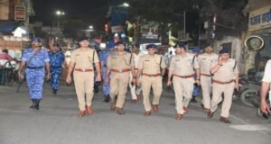 जबलपुर: रंग पंचमी एवं रमजान पर्व को शांतिपूर्ण, सुरक्षित और सौहार्दपूर्ण वातावरण में संपन्न कराने के उद्देश्य से फ्लैग मार्च निकाला। फ्लैग मार्च कंट्रोल रूम से प्रारम्भ होकर ओमती चौक, मालवीय चौक, सुपर मार्केट गंजीपुरा होते हुये लार्डगंज थाना के सामने से घमंडी चौक, बड़ा फुहारा, कमानिया, सराफा चौक, कोतवाली थाना के सामने से होकर राजा रसगुल्ला, मिलौनीगंज, मछली मार्केट होते हुये गोहलपुर तिराहा में फ्लेग मार्च का समापन हुआ।