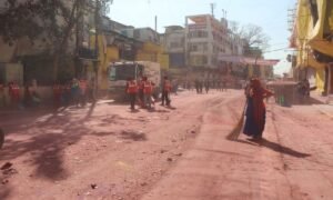 इंदौर: आज रंगपंचमी के गेर निकलने के बाद नगर निगम ने हर साल की तरह इस साल भी विशेष सफाई अभियान चलाया. मात्र 35 मिनट में राजबाड़ा क्षेत्र में सड़कों की सफाई कर दी गई. यह इंदौर की चाक चौबंद सफाई व्यवस्था का उदाहरण है.इंदौर की ऐतिहासिक तथा परंपरागत रंगपंचमी पर निकलने वाली गेर में कई गाड़ियों से हजारों टन रंग, गुलाल ,पानी से पूरे गेर मार्ग गंदगी और कचरा जमा हो जाता है.