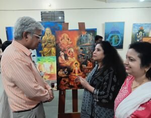 सतना। महात्मा गांधी चित्रकूट ग्रामोदय विश्वविद्यालय में आयोजित राष्ट्रीय चित्रकला प्रदर्शनी में प्रदर्शित विशिष्ट चित्रों ने दर्शकों का विशेष ध्यान आकर्षित किया। इस अवसर पर कुलगुरु प्रो. आलोक चौबे और उनकी धर्मपत्नी श्रीमती डॉ सुषमा चौबे की उपस्थिति में अंतरराष्ट्रीय ख्याति प्राप्त कलाकार सुश्री गीता दास और बीनू गुप्ता दिल्ली ने अपने अपने चित्र की थीम एवं भावार्थ को विस्तार से प्रस्तुत किया।