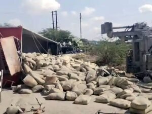 सीमेंट के कट्टे सडक़ पर बिखरे