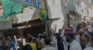 शाजापुर:कसेरा बाजार में शनिवार को नवनियुक्त शहर काजी के सम्मान समारोह के दौरान विवाद की स्थिति बन गई। समाज के एक गुट ने विरोध करते हुए नारेबाजी की और नारे लगाए, जिससे कुछ देर तनाव फैल गया। सूचना पर कोतवाली थाना प्रभारी संतोष सिंह वाघेला पुलिस बल के साथ मौके पर पहुंचे और हल्का बल प्रयोग कर भीड़ को तितर-बितर किया।
