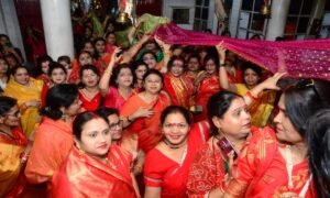 लाल वस्त्रों में सजी महिलाओं ने बढ़ाई शोभा