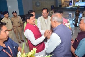 ग्वालियर। मुख्यमंत्री डॉ. मोहन यादव का मंगलवार को ग्वालियर आगमन हुआ। मुख्यमंत्री डॉ. यादव दतिया जिले के भाण्डेर में किसान सम्मेलन में भाग लेने के बाद वायुमार्ग द्वारा राजमाता विजयाराजे सिंधिया विमानतल महाराजपुरा आए। विमानतल पर जनप्रतिनिधिगणों द्वारा मुख्यमंत्री का स्वागत किया गया। विमानतल पर थोड़ी देर रुकने के बाद मुख्यमंत्री विमान से नई दिल्ली के लिये रवाना हो गए।
