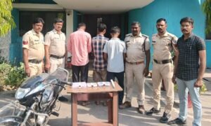 विंध्यनगर पुलिस से मिली जानकारी के अनुसार 10 फरवरी को फरियादी संदीप कुमार मिश्रा उम्र 32 वर्ष निवासी ग्रीनहॉट कॉलोनी ने रिपोर्ट दर्ज कराया कि 9 फरवरी की रात मंदिर में ताला बंद करने के बाद सुबह जब मंदिर पहुंचे तो ताला टूटा मिला। अज्ञात चोरों द्वारा मंदिर से चांदी का छत्र, मुकुट, दान पेटी के सिक्के एवं अन्य सामग्री चोरी कर ली गई थी। चोरी गए सामान की कुल कीमत लगभग 2 लाख रुपये आंकी गई। मामले की गंभीरता को देखते हुए पुलिस ने तत्काल टीम गठित कर जांच शुरू की। सीसीटीव्ही फुटेज खंगाले गए, संदिग्धों से पूछतांछ की गई और मुखबिर तंत्र को सक्रिय किया गया। जांच के दौरान संजय शाह पिता रामसेवक शाह उम्र 25 वर्ष, संजय वर्मा पिता सूरज वर्मा उम्र 25 वर्ष एवं संदीप वर्मा पिता छोटेलाल वर्मा उम्र 26 वर्ष निवासी ग्राम गहिलगढ़ को गिरफ्तार किया गया। आरोपियों के कब्जे से चांदी का बिस्किट, चांदी का मुकुट, दान पेटी के सिक्के 298 रुपये, घटना में प्रयुक्त मोटरसाइकिल एवं लोहे का सब्बल बरामद किया गया है। जहां एक अन्य आरोपी अभी फरार है, जिसकी तलाश जारी है। वहीं आरोपियों ने सोनी कटरा बैढ़न के गोलू सोनी के दुकान में बिक्री करना बताया है और गोलू सोनी ने इसे स्वीकार भी किया है। आरोपियों को आज दिन मंगलवार को न्यायालय में पेश कर जेल भेज दिया गया है। उक्त कार्रवाई में निरीक्षक अर्चना द्विवेदी, उनि प्रियंका मिश्रा, सउनि रमेश प्रजापति, प्रआर मुनेन्द्र राणा, पंकज सिंह, विजय खरे, अरुणेन्द्र पटेल, आर मनोहर देवड़ा, भोले लोधी एवं अशोक कुशवाह का सराहनीय योगदान रहा।