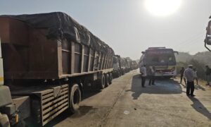 इसी दौरान गुरुवार सुबह तेज रफ्तार से आ रही बल्कर क्रमांक MP19 ZP 7762 ने खड़ी बस में जोरदार टक्कर मार दी। टक्कर इतनी तेज थी कि दोनों वाहनों को काफी नुकसान पहुंचा और हाईवे पर आवागमन प्रभावित हो गया। घटना के बाद NH-39 के दोनों तरफ वाहनों की लंबी कतार लग गई, जिससे राहगीरों को काफी परेशानी का सामना करना पड़ा।सूचना मिलने पर जमोड़ी थाना पुलिस और स्थानीय लोग मौके पर पहुंचे और स्थिति को संभालते हुए यातायात बहाल कराने का प्रयास किया।