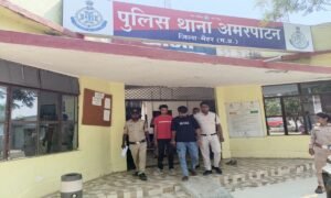 सतना:मैहर पुलिस ने दो आरोपियों को गिरफ्तार कर उनसे 315 बोर का कट्टा और जिंदा करतूत बरामद किया है.पुलिस अधीक्षक मैहर अवधेश प्रताप सिंह के निर्देशन, अनुविभागीय अधिकारी पुलिस अमरपाटन ख्याति मिश्रा के मार्गदर्शन एवम थाना प्रभारी अमरपाटन निरीक्षक विजय सिंह परस्ते के नेतृत्व में थाना अमरपाटन पुलिस द्वारा अवैध हथियार रखने वाले दो आरोपियों के विरुद्ध प्रभावी कार्यवाही करते हुए उन्हें गिरफ्तार किया ।
