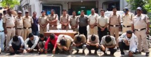 लोकेन्द्र पिता हरिसिंह पंवार निवासी ग्राम घुडावन थाना इंगोरिया जिला उज्जैन, सचिन पिता हीरालाल पाटीदार निवासी ग्राम करोली मनावर, अमित कुमार पिता हुकुमचन्द बडगोत्या किशनपुरा मक्सी रोड उज्जैन, मलखान उर्फ विजेन्द्र पिता मोहन सिसोदिया निवासी ग्राम सिया, थाना बैंक नोट प्रेस जिला देवास, शाहरूख पिता नवाब खान निवासी ग्राम सिंदनी थाना टोंकखुर्द जिला देवास, कृष्णपाल उर्फ केन्या पिता अनोखीलाल सोलंकी ग्राम सिया थाना बैंक नोट प्रेस जिला देवास, अंश उर्फ अंशु पिता कैलाश पाल निवासी ग्राम सिया थाना बैंक नोट प्रेस जिला देवास, शिवा पिता राकेश बिलगडे सिया, थाना बैंक नोट प्रेस जिला देवास, ऋतिक उर्फ जंजीरा पिता जितेन्र्द सिंह पंवार निवासी ग्राम सिया, थाना बैंक नोट प्रेस जिला देवास, रोहित पिता जयराम मालवीया छोटा मालसा पुरा थाना बैंक नोट प्रेस जिला देवास और राजा पिता साकिर खान उम्र 30 साल निवासी हाल पुरा स्थाई सिंदनी जिला देवास, केस खान पिता जाकिर खान मुसलमान निवासी ग्राम बालसमुद थाना कसरावद और गैंग सदस्य राजपाल पिता ईश्वर सिंह चन्द्रावत निवासी ग्राम रत्नाखेड़ी थाना नागदा मंडी जिला उज्जैन गिरफ्तार किए गए है। राजपाल से पूर्व में एनआईए भी पूछताछ कर चुकी है। जबकि जावेद पिता जाकिर खान निवासी ग्राम अमरपुरा थाना बैंक प्रेस नोट जिला देवास और रवि पिता विक्रम चौहान जाती मोंगिया निवासी ग्राम कसारी चौहान थाना ताल जिला रतलाम फरार है।