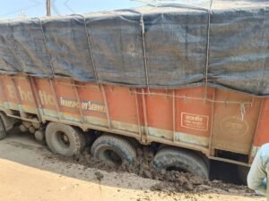 बड़वानी। शहर के झामरिया रोड़ पर शुक्रवार सुबह करीब 9 बजे भाटिया ट्रांसपोर्ट सर्विस का खाद से भरा एक ट्रक सडक़ में धंस गया। इससे लंबा जाम लग गया और यातायात व्यवस्था बाधित हुई। यह घटना सीवरेज निर्माण कार्य की खराब गुणवत्ता के कारण हुई, जिसकी पोल एक बार फिर खुल गई है। स्थानीय निवासियों ने सीवरेज कार्य के बाद सडक़ की मरम्मत ठीक से नहीं होने और गड्ढे न भरे जाने पर नाराजगी जताई है। निवासी राजमल मारू ने आरोप लगाया कि इसी कारण आए दिन वाहन फंसते हैं और दुर्घटनाओं का खतरा बना रहता है।