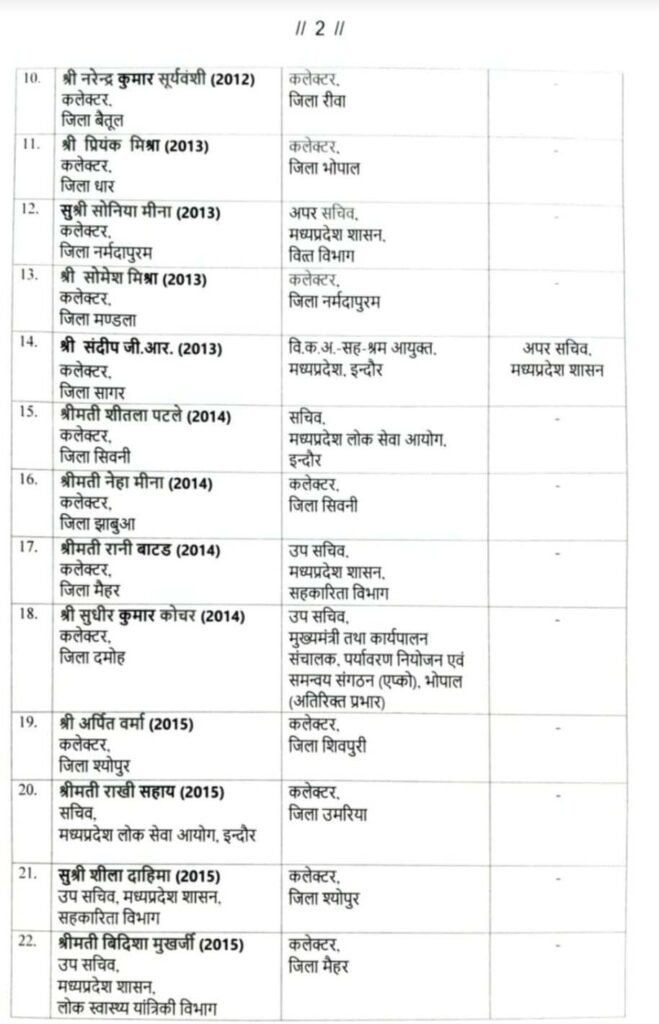 माना जा रहा है कि प्रशासनिक कसावट और कार्यप्रणाली को अधिक प्रभावी बनाने के उद्देश्य से यह निर्णय लिया गया है।सूची इस प्रकार है।