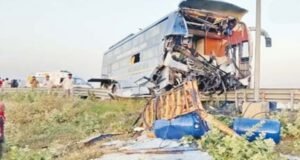 इंदौर:राजस्थान के अलवर में दिल्ली मुंबई एक्सप्रेस वे पर मंगलवार सुबह बड़ा हादसा हो गया. इंदौर से दिल्ली जा रही एक यात्री बस आगे चल रहे केमिकल से भरे ट्रक में घुस गई. हादसे में बस चालक, उसकी पत्नी और बेटे की मौत हो गई, जबकि 30 से अधिक यात्री घायल हो गए.जानकारी के मुताबिक बस में 34 यात्री सवार थे. टक्कर इतनी तेज थी कि बस का अगला हिस्सा पूरी तरह क्षतिग्रस्त हो गया. हादसे में चालक की 3 साल की बेटी भी घायल हुई है.