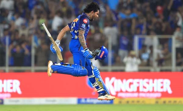 आज यहां गुजरात टाइटंस ने टॉस जीतकर पहले गेंदबाजी करने का फैसला किया। बल्लेबाजी करने उतरी मुम्बई इंडियंस को कगिसो रबाड़ा के कहर का सामना करना पड़ा। दानिश मालेबार (दो) को रबाड़ा ने पगबाधा आउट किया। चौथे ओवर में रबाडा ने क्विंटन डी कॉक (13) का शिकार कर मुम्बई इंडियंस को दूसरा झटका दिया। छठें ओवर में रबाडा ने सूर्यकुमार यादव (15) को बोल्ड कर पवेलियन भेज दिया। तिलक वर्मा और नमन धीर के बीच 52 रनों की साझेदारी हुई। 13वें ओवर में प्रसिद्ध कृष्णा ने नमन धीर को आउटकर गुजरात टाइटंस को चौथी सफलता दिलाई। नमन धीर ने 32 गेंदों में छह चौके और एक छक्का लगाते हुए 45 रनों की पारी खेली। 19वें ओवर में मोहम्मद सिराज ने हार्दिक पंड्या (15) को बाउंड्री पर कैच आउट करा दिया। मुम्बई इंडियंस ने निर्धारित 20 ओवरों में पांच विकेट पर 199 रनों का स्कोर बनाया। तिलक वर्मा ने 45 गेंदों में आठ चौके और सात छक्कों की मदद से नाबाद 101 रनों की पारी खेली।