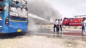 शाजापुर जिले के नेशनल हाईवे-52 पर मंगलवार दोपहर करीब 2 बजे एक चलती बाराती बस में अचानक आग लगने से अफरा-तफरी मच गई। आग तेजी से फैलते ही बस पूरी तरह जलकर खाक हो गई, जबकि उसमें सवार 60-70 यात्रियों ने कूदकर अपनी जान बचा ली। घटना में कोई जनहानि नहीं हुई, लेकिन यात्रियों का सामान जल गया।