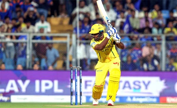 आज यहां मुम्बई इंडियंस ने टॉस जीतकर पहले गेंदबाजी करने का फैसला किया। बल्लेबाजी करने उतरी चेन्नई सुपर किंग्स को तीसरे ओवर में एम गजनफर ने कप्तान ऋतुराज गायकवाड़ को आउट कर पहला झटका दिया। ऋतुराज गायकवाड़ ने 14 गेंदों में तीन चौके और एक छक्का लगाते हुए 22 रन बनाये। छठें ओवर में मिचेल सैंटनर ने सरफराज खान (14) का शिकार कर लिया। इसके बाद मुम्बई के गेंदबाजों के आक्रामक प्रदर्शन के आगे चेन्नई सुपर किंग्स के बल्लेबाज अधिक देर तक नहीं टिक सके और अपने विकेट गंवाते रहे। शिवम दुबे (पांच), डेवाल्ड ब्रेविस (21), कार्तिक शर्मा (18) और जेमी ओवर्टन (15) रन बनाकर आउट हुये। हालांकि इस दौरान संजूसैमन एक छोर थामे रन बनाते रहे।