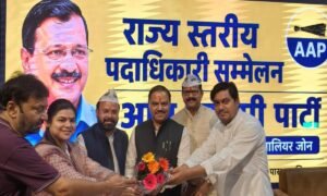 ग्वालियर: आम आदमी पार्टी, मध्य प्रदेश द्वारा संगठन नया विस्तार को लेकर प्रदेश एवं जिला पदाधिकारियों का महा सम्मेलन ग्वालियर स्थित बाल भवन में आयोजित किया गया। सम्मेलन से प्रदेश प्रभारी द्वारा आम आदमी पार्टी के संभागीय कार्यालय, ठाटीपुर का उद्घाटन भी किया गया।सम्मेलन में मुख्य अतिथि के रूप में पार्टी के प्रदेश प्रभारी एवं दिल्ली के पूर्व कानून मंत्री जितेन्द्र सिंह तोमर तथा विशिष्ट अतिथि के रूप में दिल्ली से तीन बार के विधायक मॉडल टाउन पूर्व विधायक अखिलेशपति त्रिपाठी एवं प्रदेश सह प्रभारी सुरजीत सिंह पवार उपस्थित रहे, इसके साथ ही प्रदेश उपाध्यक्ष मनीक्षा सिंह तोमर एवं प्रदेश संगठन मंत्री अमित शर्मा विशेष रूप से मौजूद रहे।