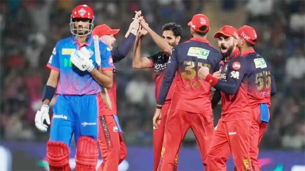 अरुण जेटली स्टेडियम में खेले गए मुकाबले में रॉयल चैलेंजर्स बेंगलुरु के तेज गेंदबाजों ने दिल्ली कैपिटल्स की बल्लेबाजी को पूरी तरह तहस-नहस कर दिया। भुवनेश्वर कुमार ने पहले ही ओवर में डेब्यू कर रहे साहिल परख को शानदार इनस्विंग यॉर्कर पर बोल्ड कर दिया। इसके बाद जोश हेजलवुड ने दूसरे ओवर की पहली दो गेंदों पर केएल राहुल और समीर रिजवी को पवेलियन भेजकर दिल्ली को शुरुआती झटका दे दिया।